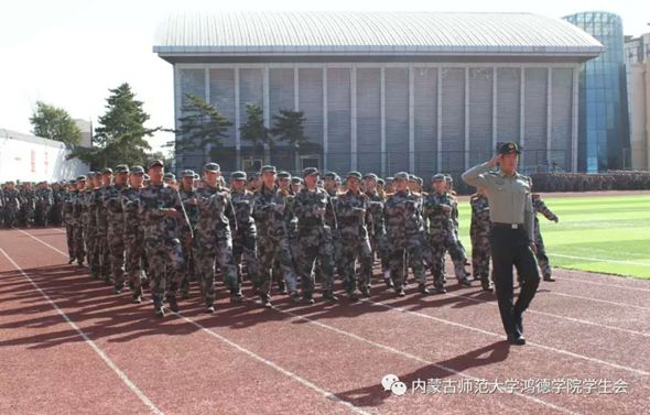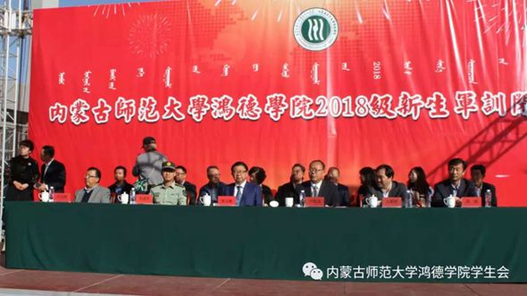 工作動態/ LATEST NEWS2018年9月20日上午,內蒙古師范大學鴻德學院2018級全體軍訓生在訓練場上接受檢閱。出席本次閉營儀式的領導有:中國人民解放軍31401部隊教導員賈彥君。內蒙古師范大學鴻德學院院長周玉樹教授,副院長王新剛、副院長劉文清教授、院長助理周偉,盧鳳龍書記和我院各處室、系(分院)的領導及2018級新生輔導員和全體新生參加閉營儀式。