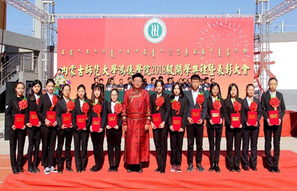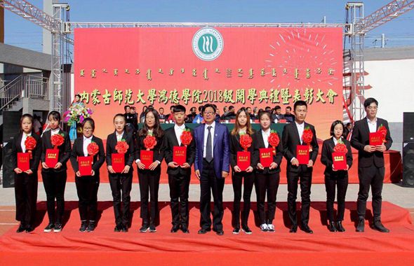 工作動態/ LATEST NEWS2018年10月12日上午內蒙古師范大學鴻德學院2018級新生開學典禮暨表彰大會于運動場隆重舉行。活動由黨委書記盧鳳龍主持,周玉樹院長首先發表了題為《立德掌教,重在鑄魂》的講話。周院長為來賓和2018級新生們詳盡的講述了鴻德學院校名、校徽、校訓的由來并代表學院歡迎每位新同學的到來,同時也祝賀表彰大會中獲獎的同學,誠摯感謝捐立獎項的社會愛心人士和企業家們。內蒙古教育廳原廳長、原國家督學郭明倫先生也發表了熱情洋溢的講話,2018級藝術系美術學專業秦佳悅同學作新生代表發表了入學演講。