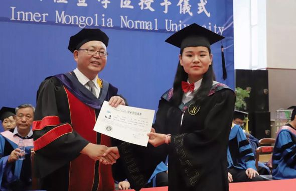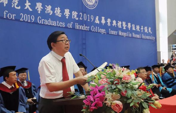 工作動態/ LATEST NEWS6月26日上午,內蒙古師范大學鴻德學院2019屆畢業典禮暨學位授予儀式在學院文體館隆重舉行。出席畢業典禮的領導和嘉賓有:院領導周玉樹、盧鳳龍、王新剛、劉文清、周偉,主禮教授張豐蘭、張呼鄰、宿莊、王曉燕、蔡文斌、Spaans、 Moritz、趙占彪、趙利生、王桂英、杜靜然、楊成力、王海亮、江鴻、偉勇、李中山、吳甲才,學院各系、各職能部門負責人。2313位畢業生、100余位教師代表和100余位家長代表參加了畢業典禮。2019屆全體畢業生懷揣著對祖國的熱愛和建設美好祖國的憧憬,飽含深情地演唱《我和我的祖國》。聲聲高昂的歌曲為15級畢業生四年的大學生活畫上了圓滿的句號,2019屆畢業典禮暨學位授予儀式在嘹亮的歌聲中落下帷幕。