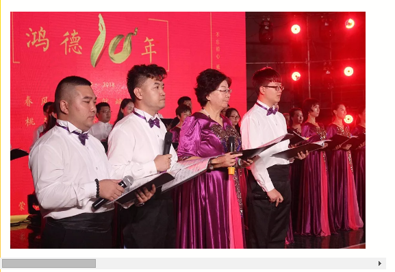 晚會的節目精彩紛呈,邵毅老師演唱的《我愛我的祖國》深情動人;趙晨君、張洪雪老師以及白軼琳帶來樂器表演《芭蕾小夜曲》,當西洋樂器與芭蕾舞蹈相遇,別有異域風味;我院外聘老師組成的咖咖俱樂部合唱的《今天是你的生日》,感慨十年鴻德,感動崢嶸歷程;我院鴻韻合唱團帶來了他們的美好祝福,進獻十歲鴻德;周長艷老師及各專業學生代表帶來詩朗誦《明鏡赤子心,高遠學人夢》,傳播鴻德學子正能量,常懷赤子心,成就高遠夢。由韓茂林、郭雅琪等人帶來的《學前教育專業舞蹈課程展示》一展我系學前師生風采。歌聲飛揚,舞姿輕盈,晚會以大合唱《再一次出發》《二十年后再相遇》收尾,氣勢宏大,就像歌中唱的那樣,我們約定二十年后再相遇,看鴻德滄桑變化輝煌進步。這次系慶,既是人文系十年發展歷程的全面展示,也是其邁向新去向、新起點的一個重要里程碑。