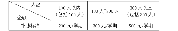 第七條 每個社團原則上配備一名指導教師。學院為每位指導教師給予一定補助,具體如下表:
